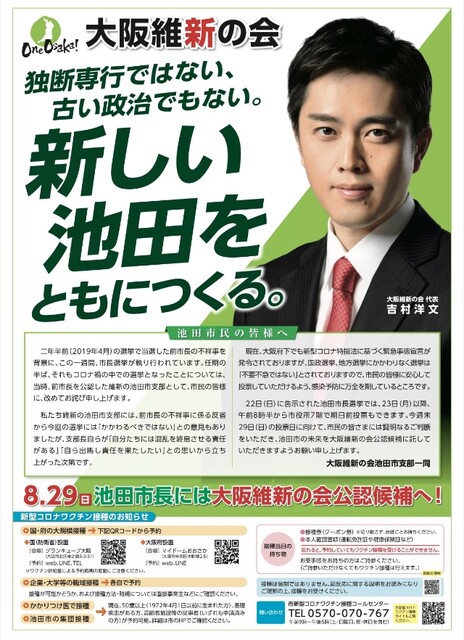 池田市長選挙 維新 : 活動報告Vol.30 | 大阪維新の会・大阪府議会議員(堺市堺区選出 ... / 210811 たきざわ智子池田市議の池田市長選挙出馬表明について 松井一郎日本維新の会代表 #たきざわ智子 #池田市 #池田市長.